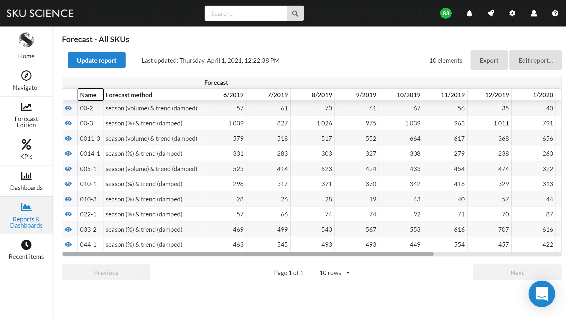 Based on your historical data, SKU Science calculates your forecasts at the appropriate level for your business (item, item / customer or any other combination).